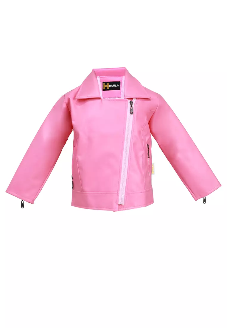 HamlinFisca Jaket Kulit Anak Perempuan Zipper Design Motif Polos Material Leather ORIGINAL - Pink3400000.001292000.00