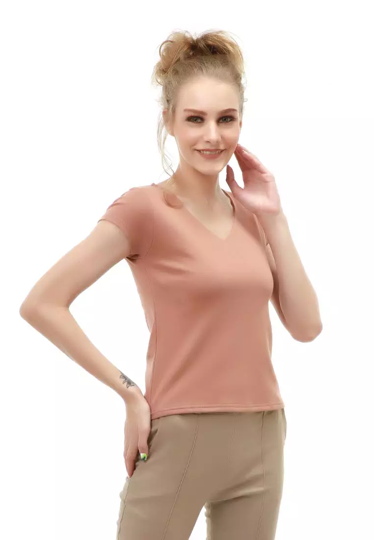 Genevie Kaos Kasual Wanita Vneck Lengan Pendek Material Cotton ORIGINAL - Millo