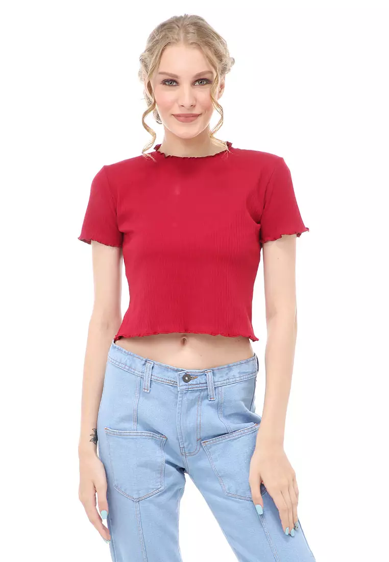 Genevie T-Shirt Kaos Crop Atasan Kasual Wanita Lengan Pendek Garis Timbul Material Cotton ORIGINAL - Maroon