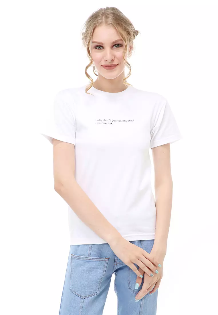 Genevie T-Shirt Kasual Wanita Why Didn't You Tell Anyone Material Cotton Combed ORIGINAL - White