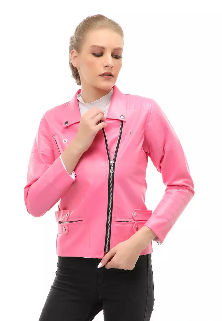 HamlinGlenice Jacket Fashion Wanita Windproof & Waterproof Desain Zipper Pocket Material Leather ORIGINAL - Pink3640000.001456000.00