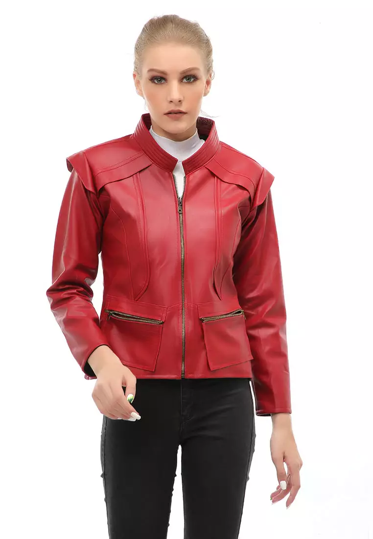 HamlinGlenice Jacket Kulit Casual Wanita Zipper Pocket Material Leather ORIGINAL - Red3467500.001387000.00