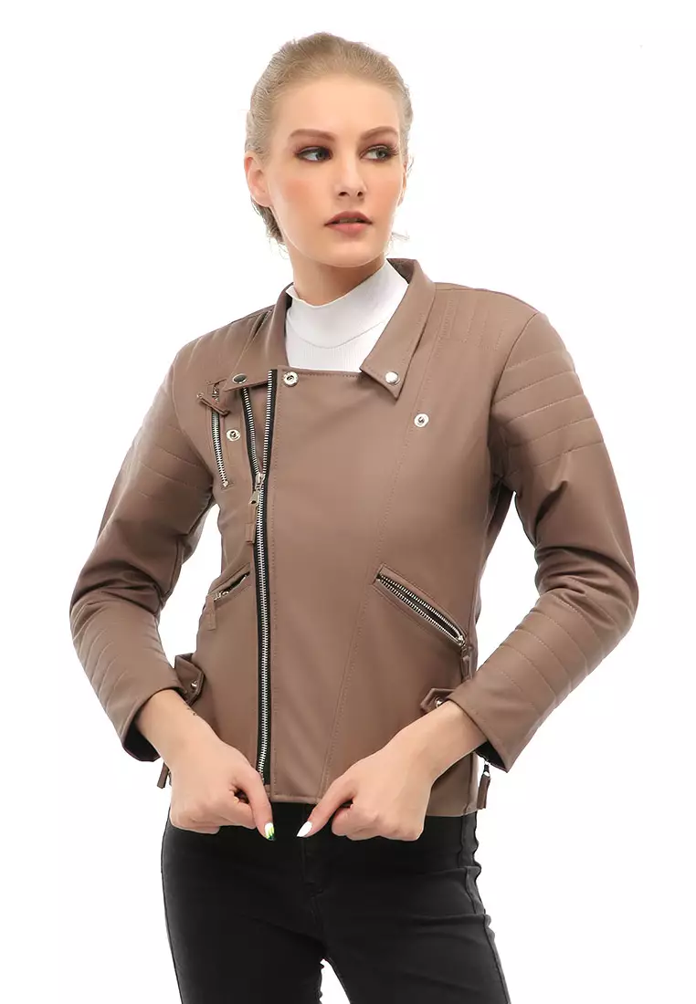 HamlinGlenice Jacket Outer Wanita Lengan Panjang Windproof Zipper Pocket Material Leather ORIGINAL - Mocca3637500.001455000.00