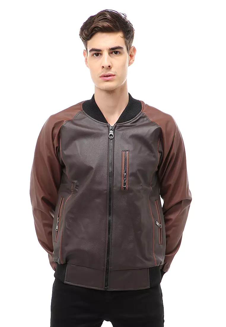HamlinHalbert Outerwear Jaket Bomber Kulit Pria Staylish Material Leather ORIGINAL - Black Brown4777500.001911000.00