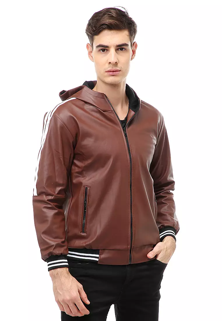 Halbert Outerwear Jaket Kulit Hoodie Pria Model List Material Leather ORIGINAL - Dark Brown