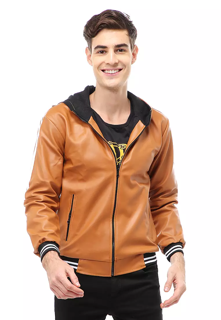 Halbert Outerwear Jaket Kulit Hoodie Pria Model List Material Leather ORIGINAL - Tan