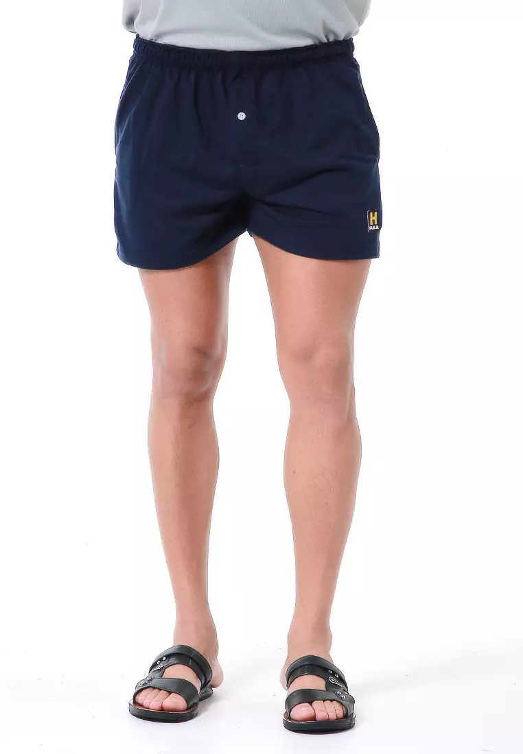 Halburt Celana Pendek Santai Pria Boxer Motif Polos Material Baby Terry ORIGINAL - Navy