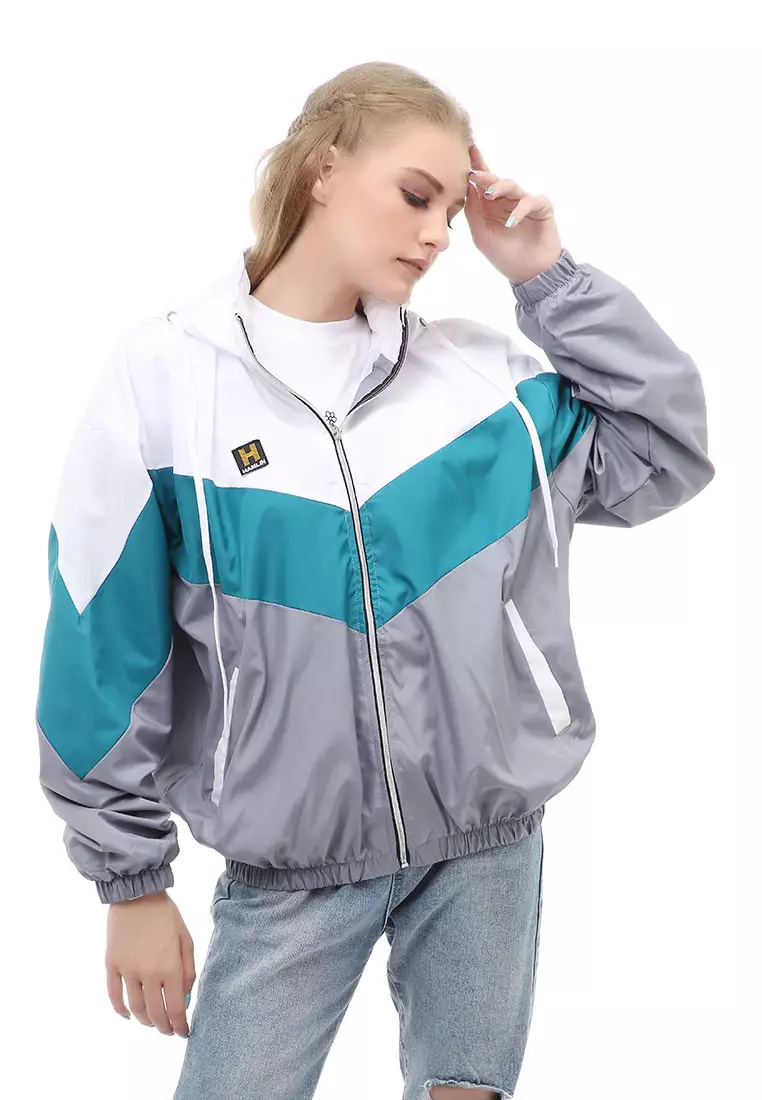 HamlinHardwin Jacket Outer Wanita Hoodie Kombinasi 3 Warna Material Parasut Despo ORIGINAL - White Tosca Gray1415000.00566000.00
