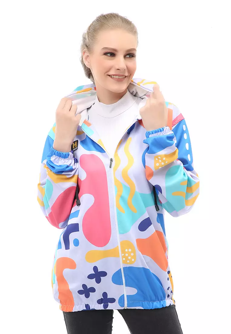 HamlinHardwin Jacket Outer Wanita Jaket Hoodie Sepeda Abstrack Motive 2 Material Parasut ORIGINAL - Orange Blue1955000.00782000.00