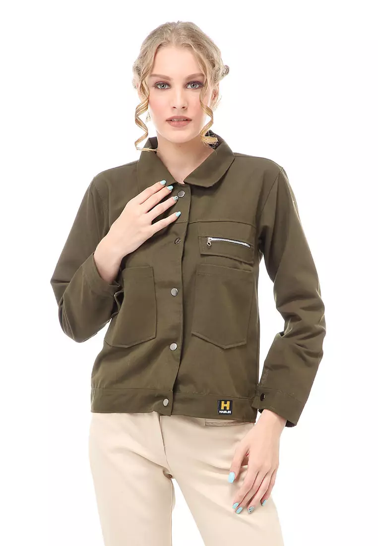 HamlinHardwin Jacket Outer Wanita Jaket Pocket Zippy Material Baby Canvas ORIGINAL - Army Green1297500.00519000.00
