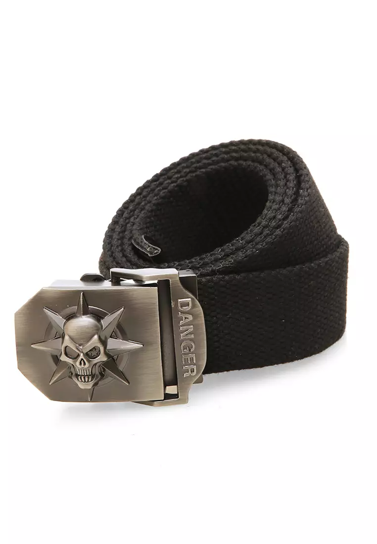 Ilo Aksesoris Fashion Pria Casual Belt Desain Buckle Skull Ikat Pinggang Material Canvas ORIGINAL - Black