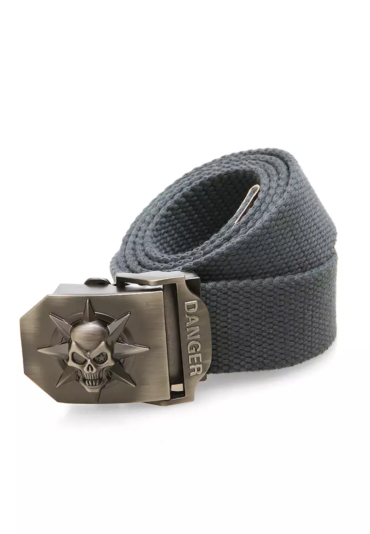 Ilo Aksesoris Fashion Pria Casual Belt Desain Buckle Skull Ikat Pinggang Material Canvas ORIGINAL - Gray
