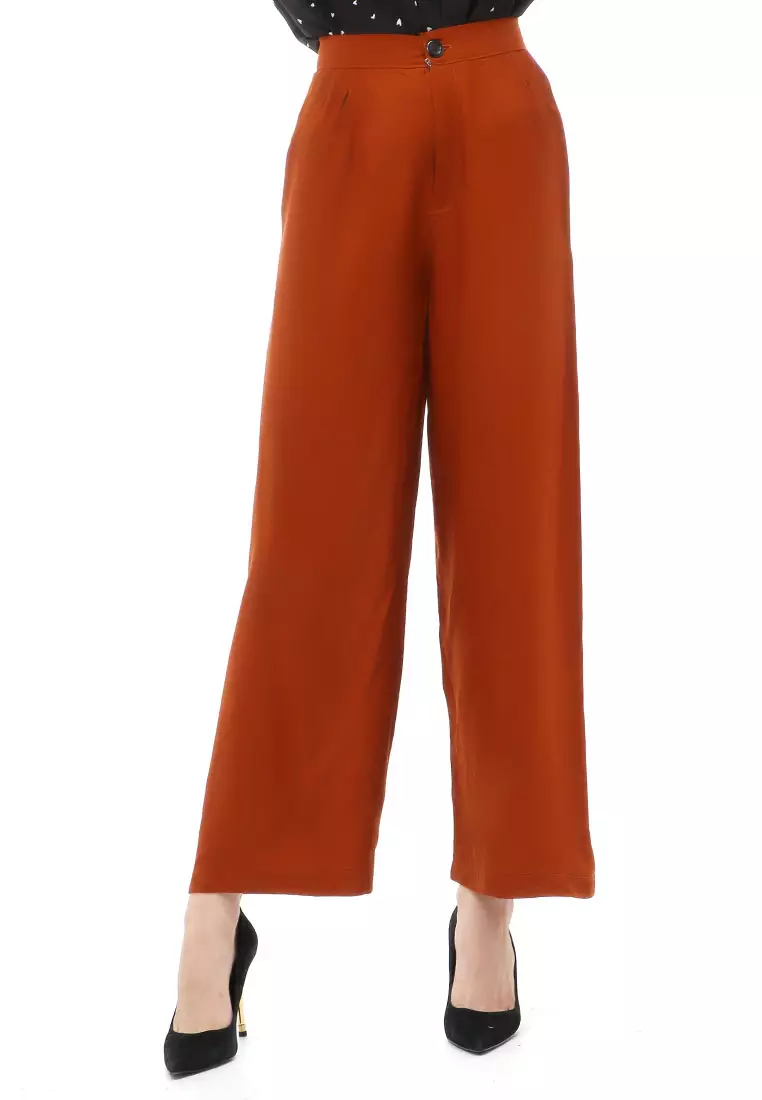 HamlinJourel Celana Panjang Kasual Kulot Highwaist Wanita Style Kancing Resleting Material Rayon ORIGINAL - Copper Chocolate880000.00352000.00