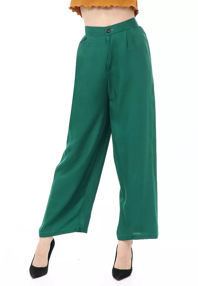 HamlinJourel Celana Panjang Kasual Kulot Highwaist Wanita Style Kancing Resleting Material Rayon ORIGINAL - Green Bottle880000.00352000.00