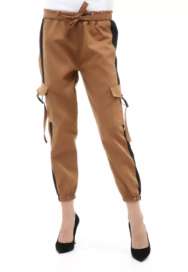 HamlinJourel Celana Panjang Kasual Wanita Jogger Cargo Pants Plered Line Material Cotton ORIGINAL - Mocca Black1410000.00564000.00