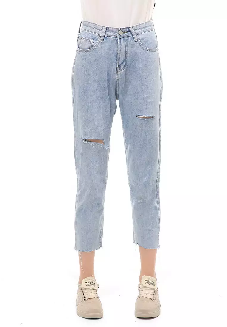 Jourel Celana Panjang Ripped Jeans Wanita Stylish Design Material Denim ORIGINAL - Light Blue
