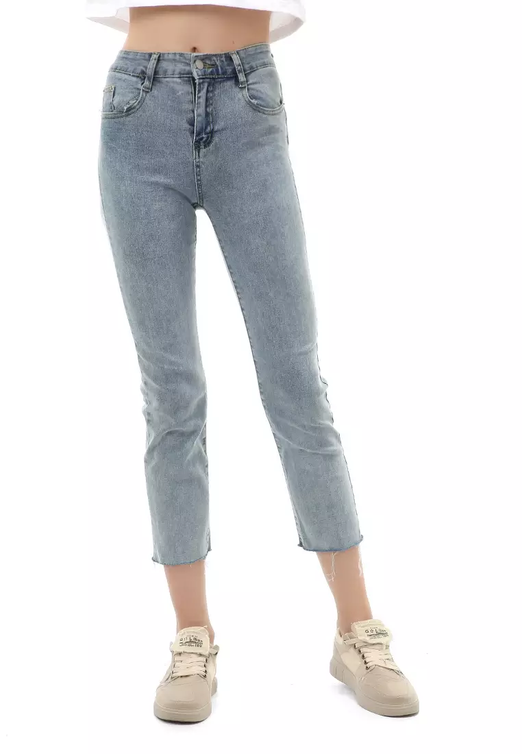 Jourel Long Pants Unfinish Wanita Celana Jeans High Waist Material Denim ORIGINAL - Light Blue