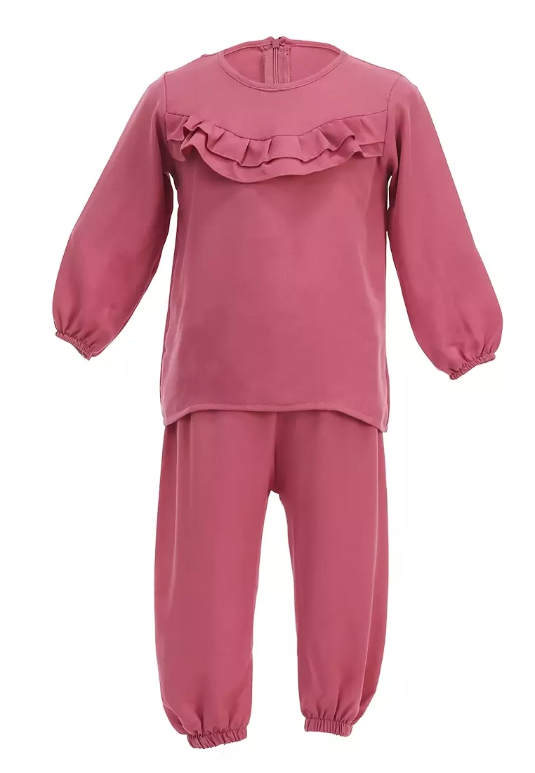 Jourell Setelan Anak Perempuan Lengan Panjang Kids One Set Motif Polos Material Cotton ORIGINAL - Peach