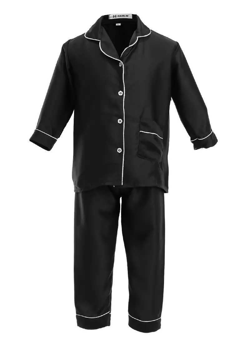HamlinJoyce Piyama Anak Unisex Lengan Panjang Kids Pajamas Motif Polos Material Satin ORIGINAL - Black820000.00328000.00