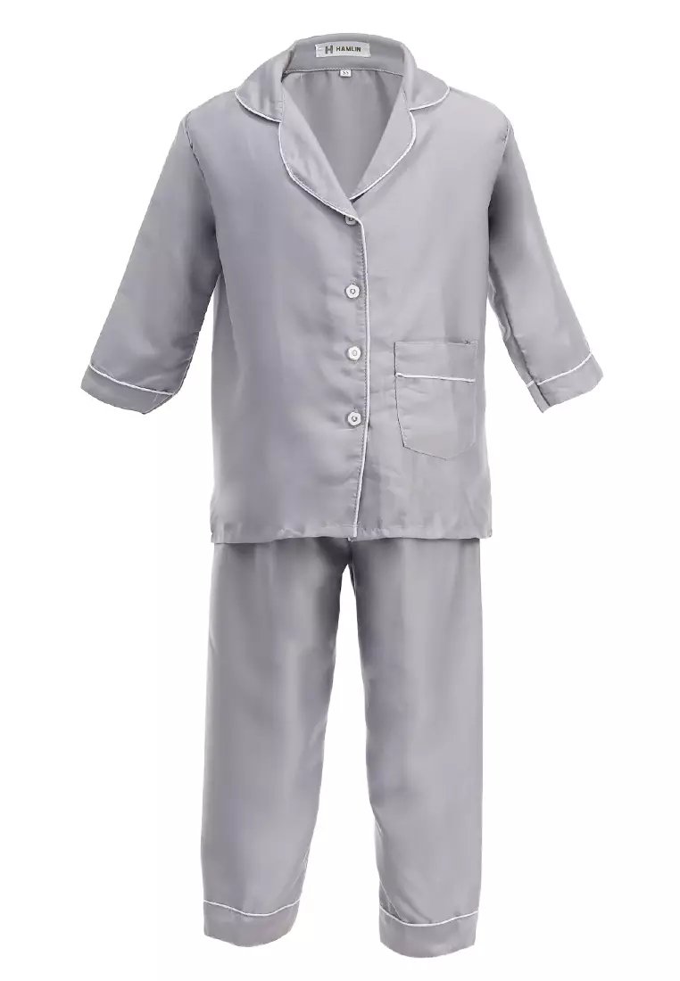 HamlinJoyce Piyama Anak Unisex Lengan Panjang Kids Pajamas Motif Polos Material Satin ORIGINAL - Gray820000.00328000.00