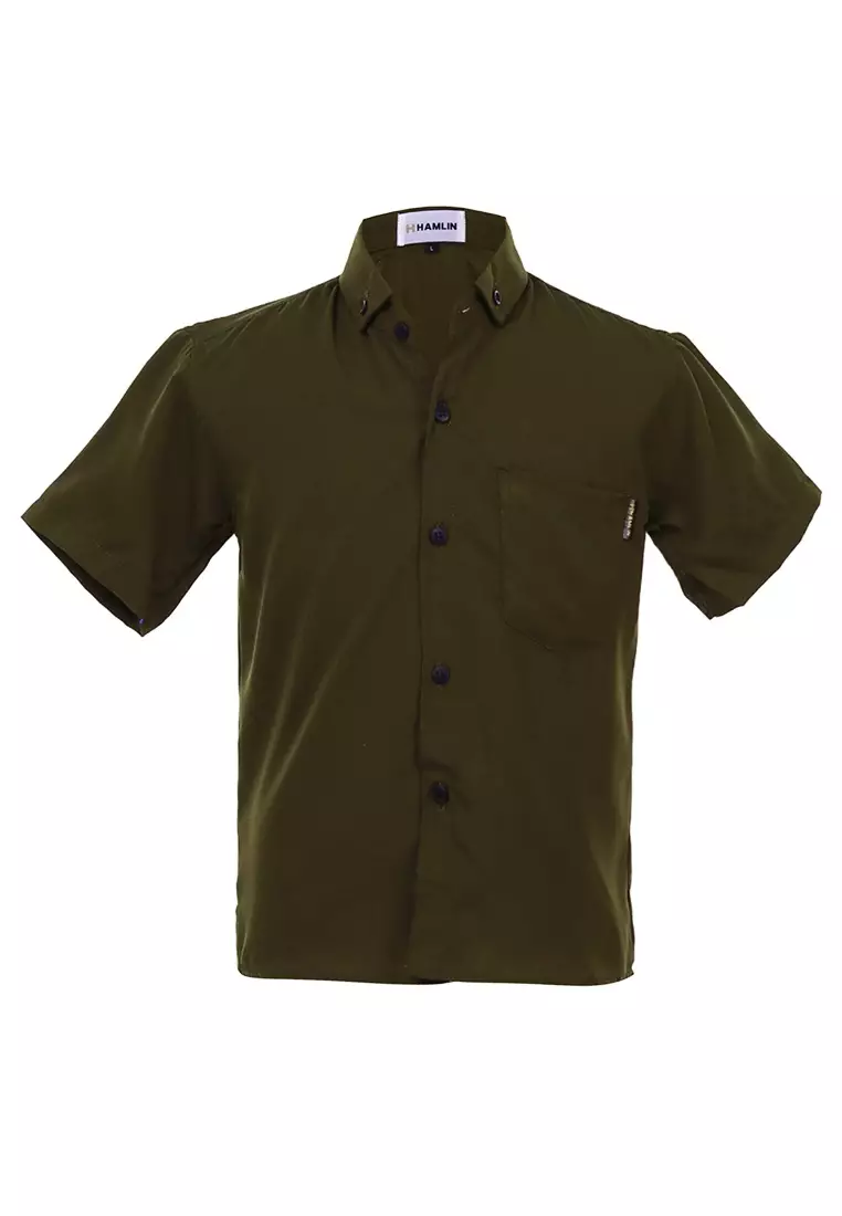 HamlinJuste Kemeja Formal Anak Laki-laki Lengan Pendek Motif Polos Kids Shirt Comportable Material Cotton ORIGINAL - Army Green795000.00318000.00