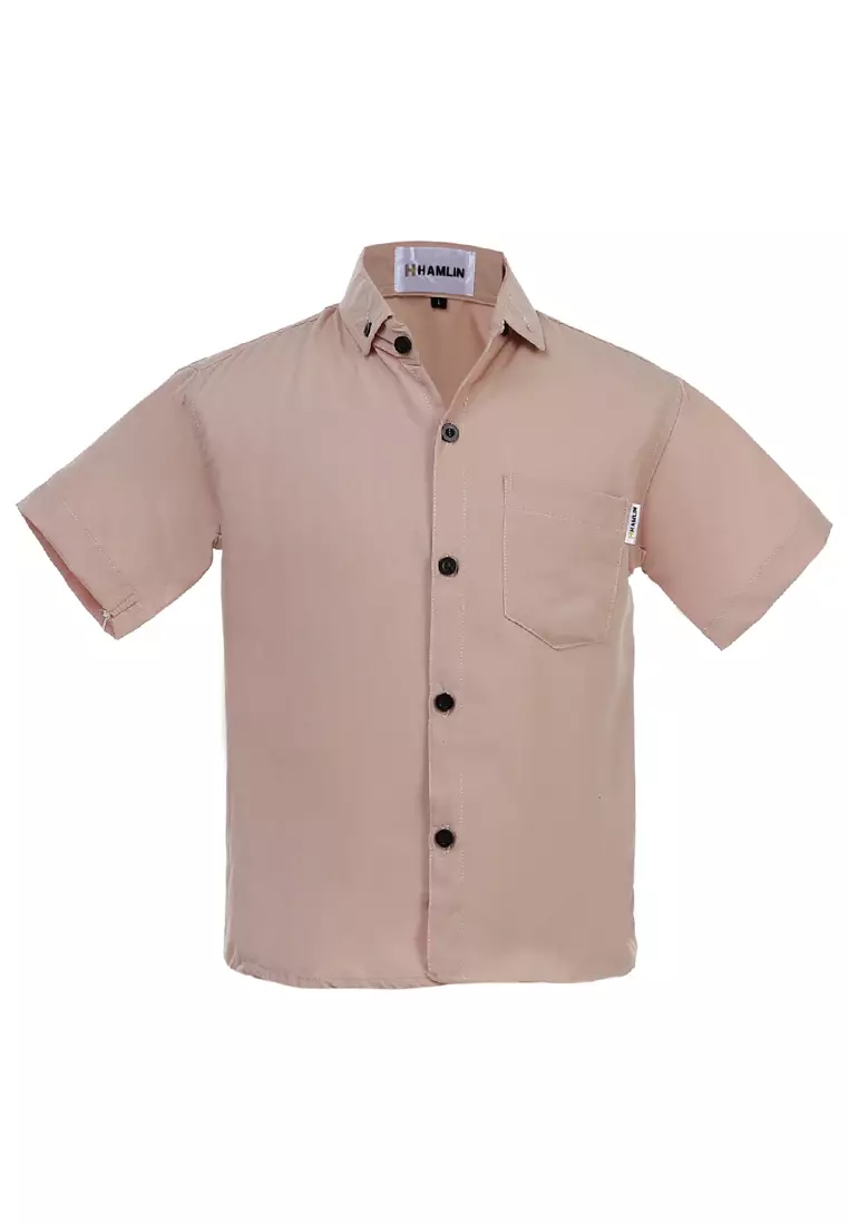 HamlinJuste Kemeja Formal Anak Laki-laki Lengan Pendek Motif Polos Kids Shirt Comportable Material Cotton ORIGINAL - Nude795000.00318000.00