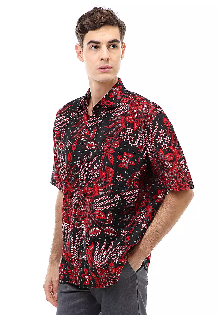 HamlinKendrick Atasan Formal Kemeja Batik Pria Motif Manggar Abang Short Sleeve Full Furing Material Cotton ORIGINAL - Red1397500.00559000.00