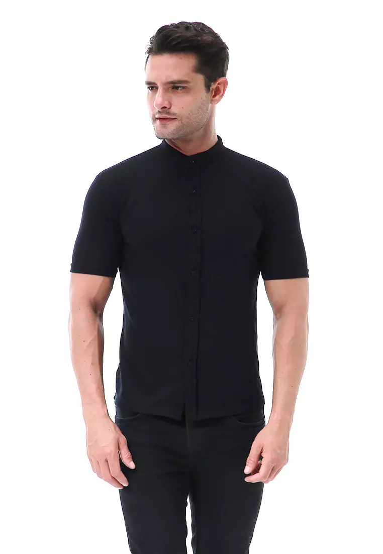 Leopold Atasan Pria Kemeja Kasual Slim Fit Lengan Pendek Motif Polos Material Cotton ORIGINAL - Black