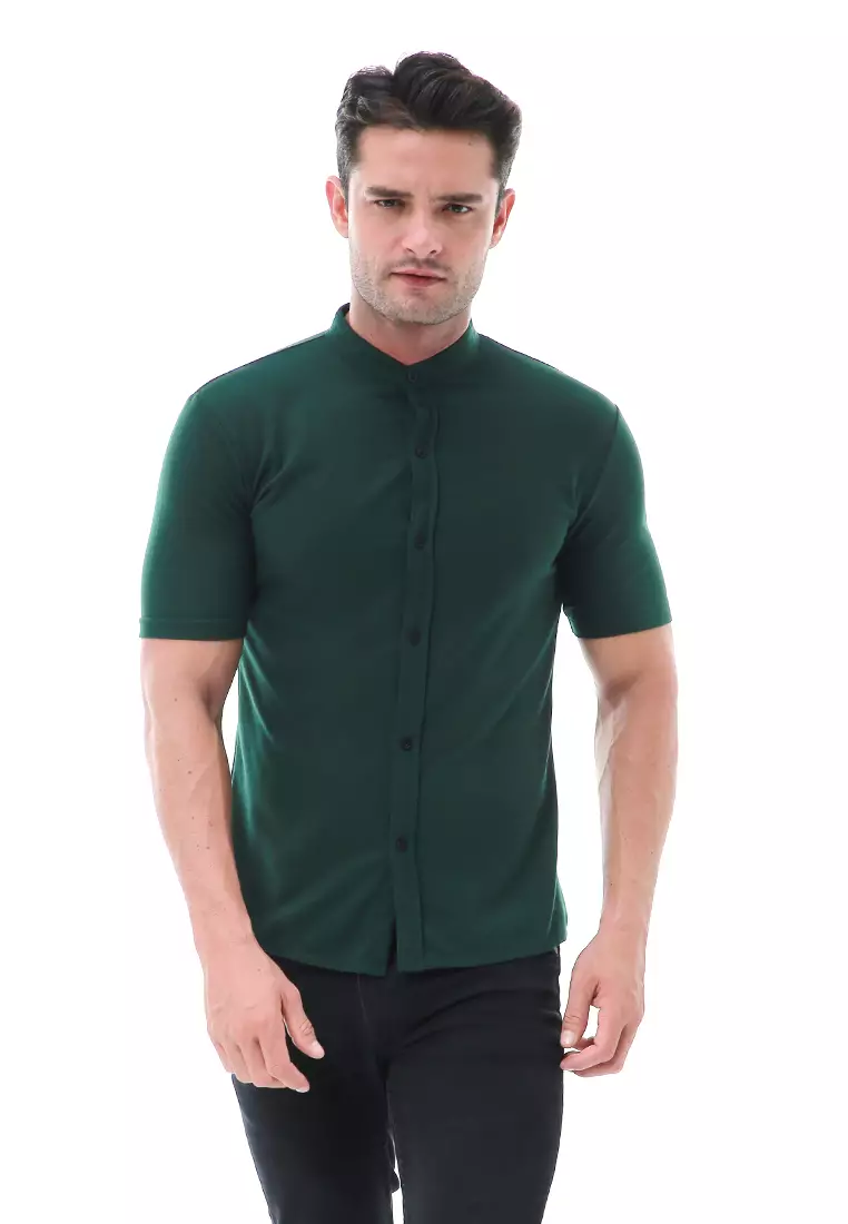 Leopold Atasan Pria Kemeja Kasual Slim Fit Lengan Pendek Motif Polos Material Cotton ORIGINAL - Green
