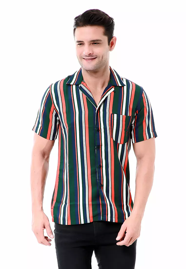 HamlinLeopold Atasan Pria Kemeja Motif Salur Lengan Pendek Material Cotton ORIGINAL - Green Orange1352500.00541000.00