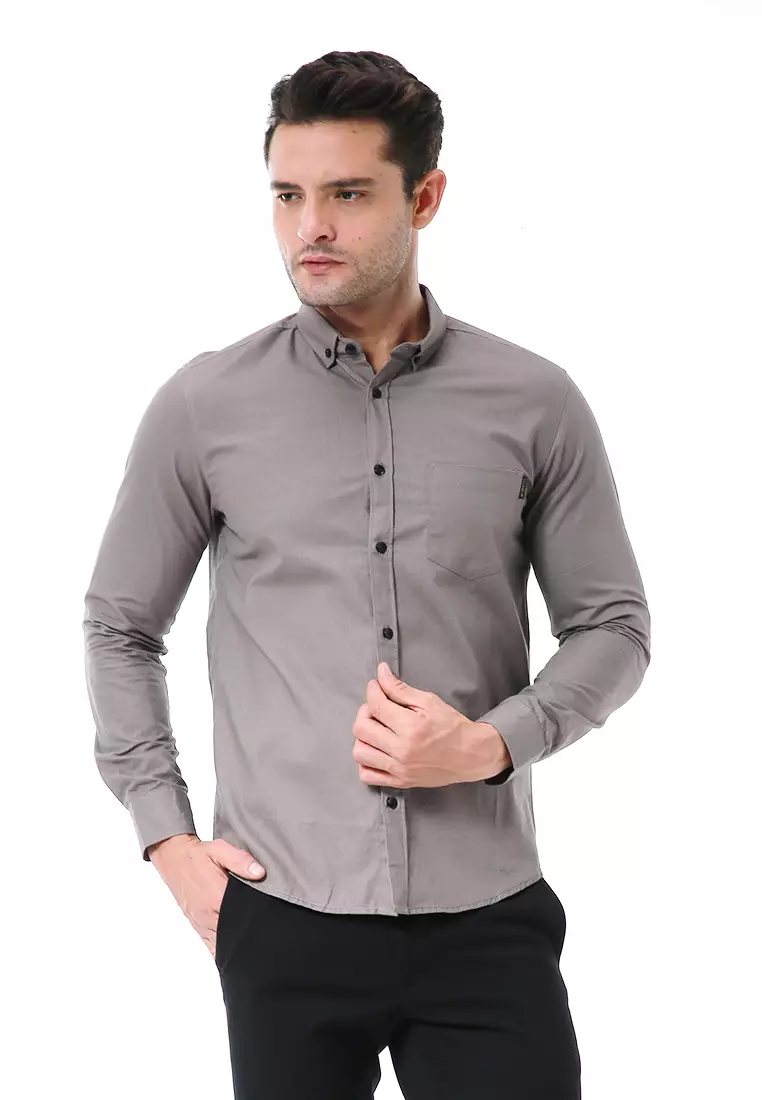Leopold Kemeja Basic Pria Motif Polos Long Sleeve Material Cotton ORIGINAL - Dark Gray