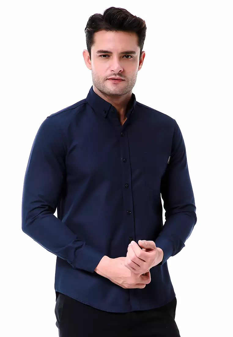 Leopold Kemeja Basic Pria Motif Polos Long Sleeve Material Cotton ORIGINAL - Navy