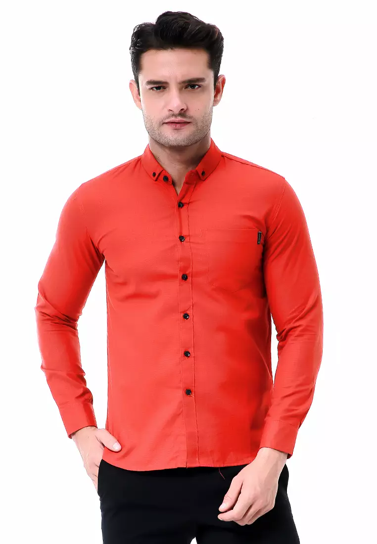 Leopold Kemeja Basic Pria Motif Polos Long Sleeve Material Cotton ORIGINAL - Orange