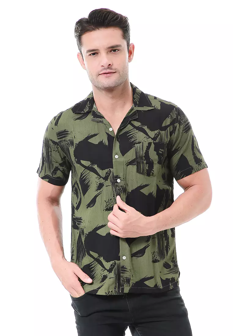 Leopold Kemeja Printing Pria Abstrack Motive Lengan Pendek Material Rayon ORIGINAL - Green Black