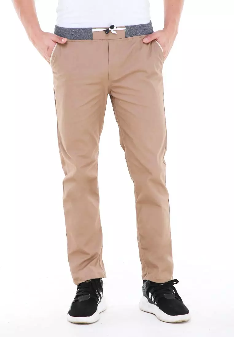 Locko Celana Panjang Chino Pria Karet Elastis Casual Long Pants Material Cotton ORIGINAL - Mocca