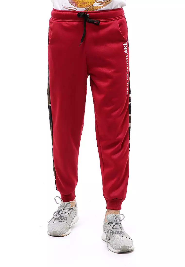 Locko Long Pants Celana Jogger Pria Kombinasi List Army Material Fleece ORIGINAL - Maroon