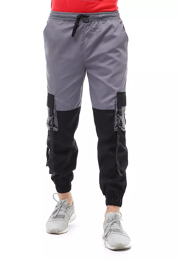 Locko Long Pants Celana Jogger Pria Kombinasi Material Cotton Twill ORIGINAL - Gray Black