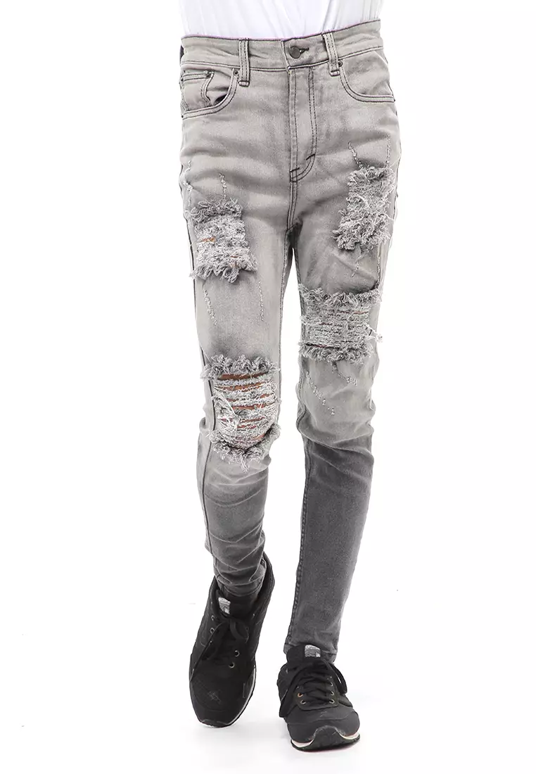 Locko Long Pants Ripped Jeans Celana Panjang Sobek Pria Material Denim ORIGINAL - Gray