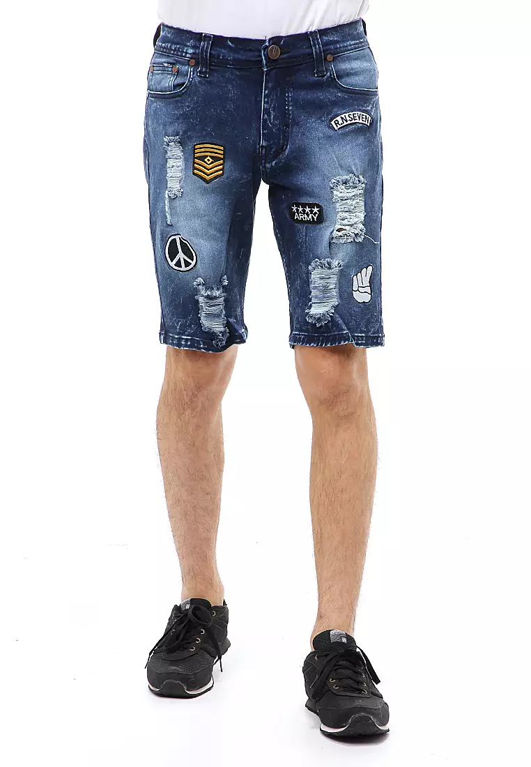 HamlinLocko Short Pants Ripped Jeans Celana Pendek Pria Sticker Motive Material Denim ORIGINAL - Retro Blue1982500.00793000.00