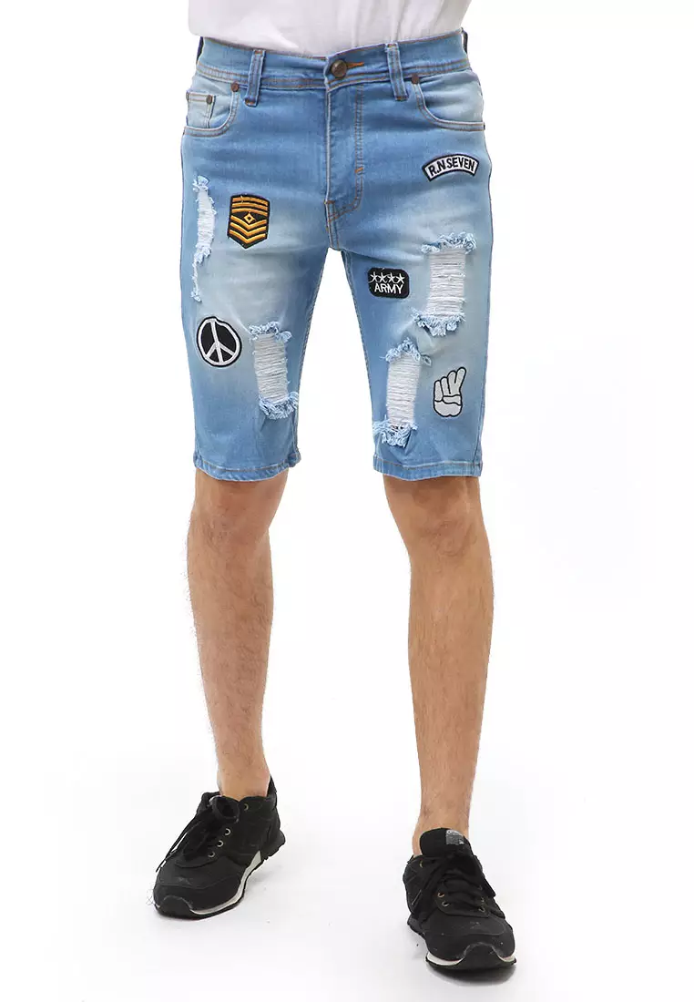 HamlinLocko Short Pants Ripped Jeans Pria Sticker Motive Material Denim ORIGINAL - Bioblitz1982500.00793000.00