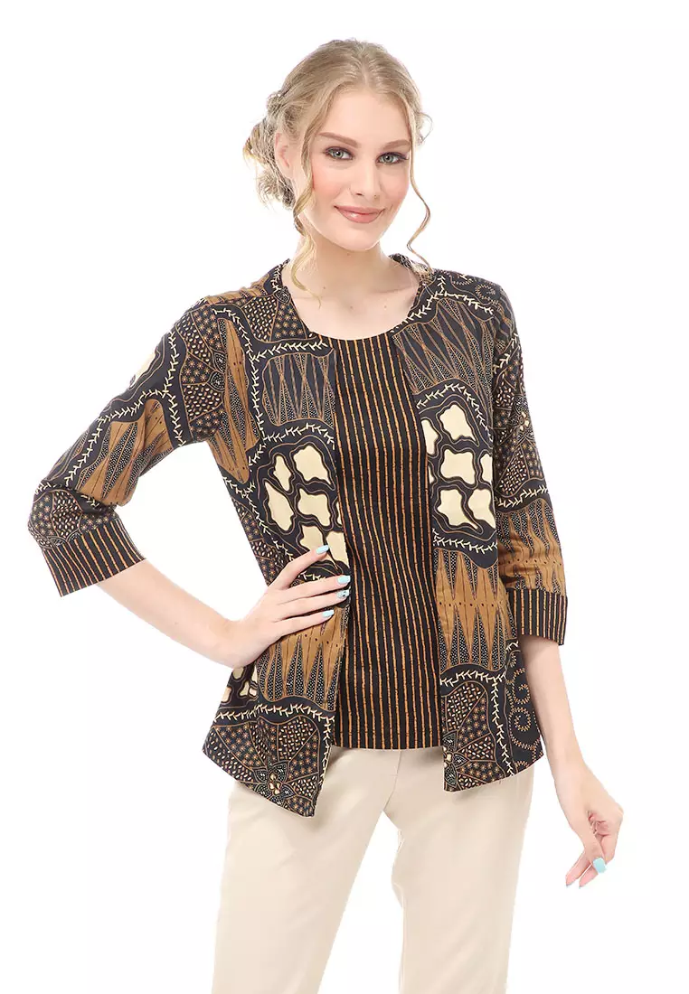HamlinLynelle Atasan Formal Wanita Blouse Batik Ali Lengan Panjang Material Cotton ORIGINAL - Brown2755000.001102000.00