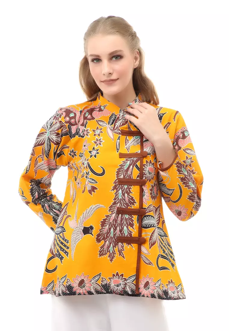 HamlinLynelle Atasan Formal Wanita Blouse Batik Long Sleeve Model Kancing Material Cotton ORIGINAL - Yellow1992500.00757150.00