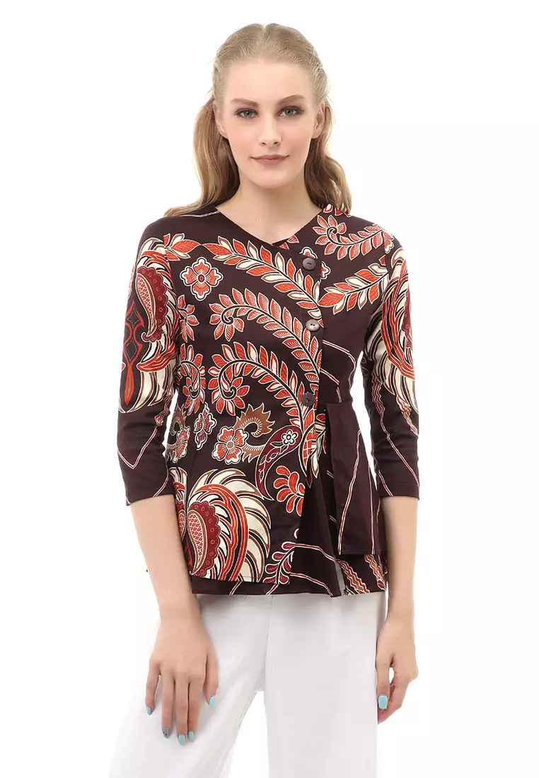 HamlinLynelle Atasan Kasual Wanita Blouse Batik Lengan Panjang Material Cotton ORIGINAL - Orange1387500.00555000.00