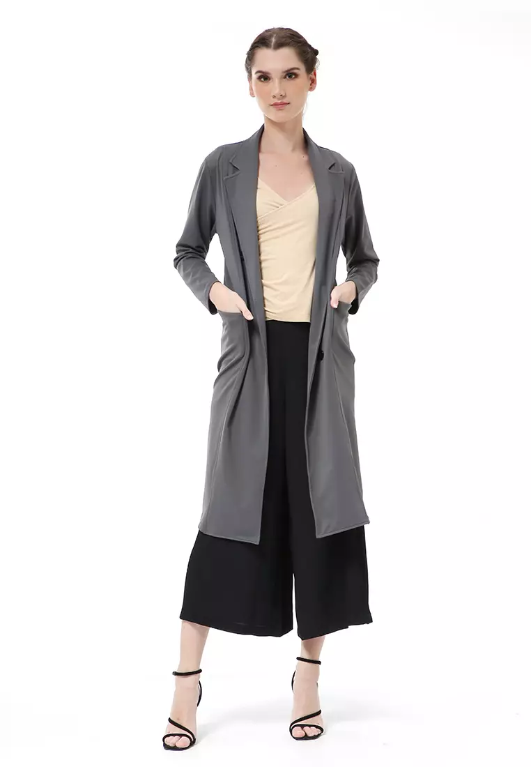 HamlinMyra Outerwear Wanita Long Blazer Desain Kancing Plain Motive Material Wedges ORIGINAL - Dark Gray2632500.001000350.00
