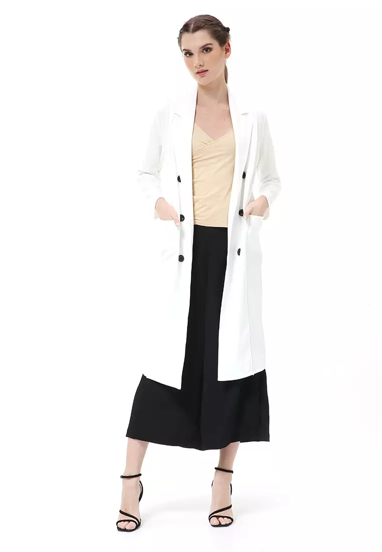 Myra Outerwear Wanita Long Blazer Desain Kancing Plain Motive Material Wedges ORIGINAL - White