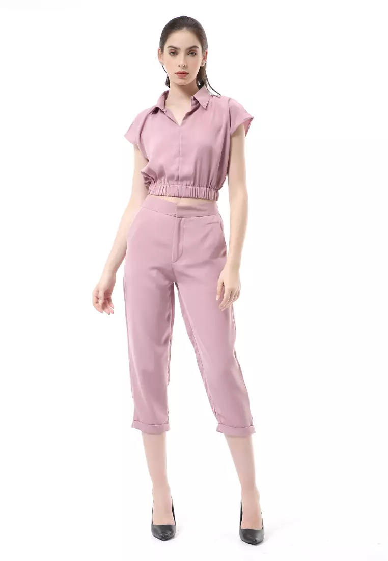 HamlinNayra One Set Setelan Atasan Crop Karet Lengan Pendek Basic Pants Wanita Material Dolce ORIGINAL - Dusty Pink2117500.00804650.00