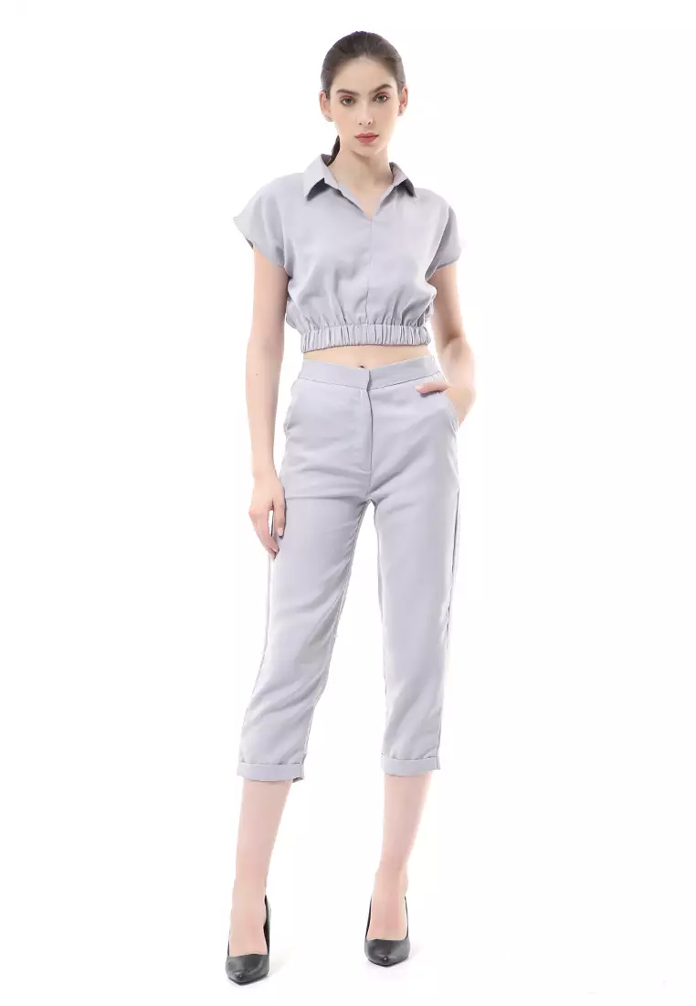 Nayra One Set Setelan Atasan Crop Karet Lengan Pendek Basic Pants Wanita Material Dolce ORIGINAL - Gray