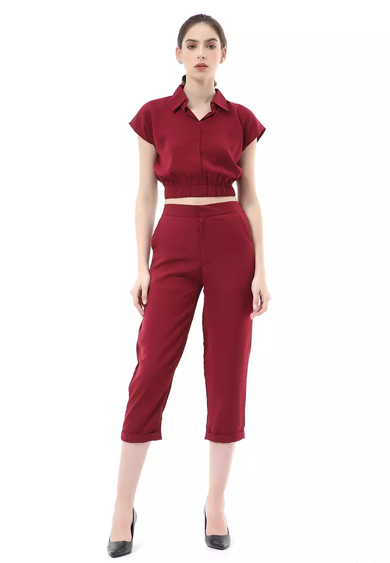 HamlinNayra One Set Setelan Atasan Crop Karet Lengan Pendek Basic Pants Wanita Material Dolce ORIGINAL - Maroon2117500.00847000.00