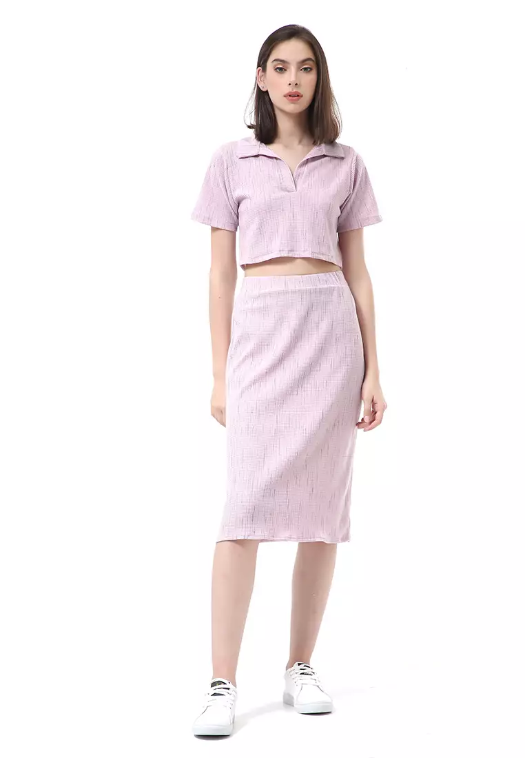 Nayra One Set Setelan Atasan Crop Lengan Pendek Rok Wanita Plain Motive Material Knit ORIGINAL - Lilac