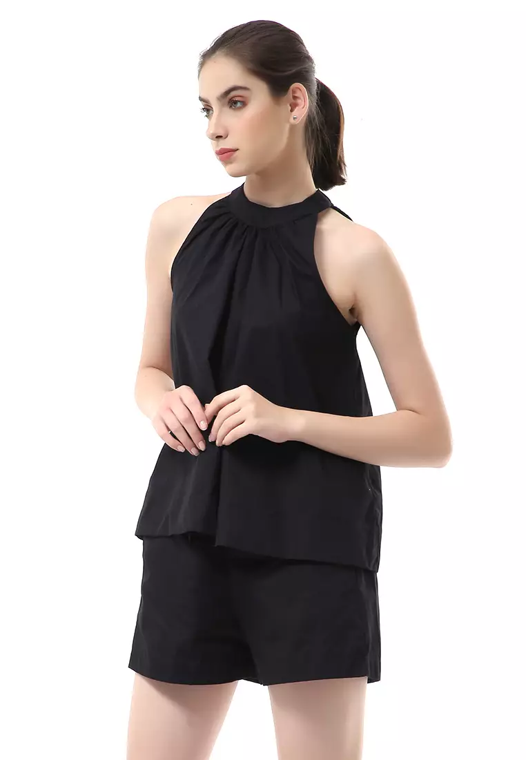 HamlinNayra One Set Setelan Wanita Sleeveless Blouse with Short Pants Plain Motive Material Cotton ORIGINAL - Black1927500.00771000.00